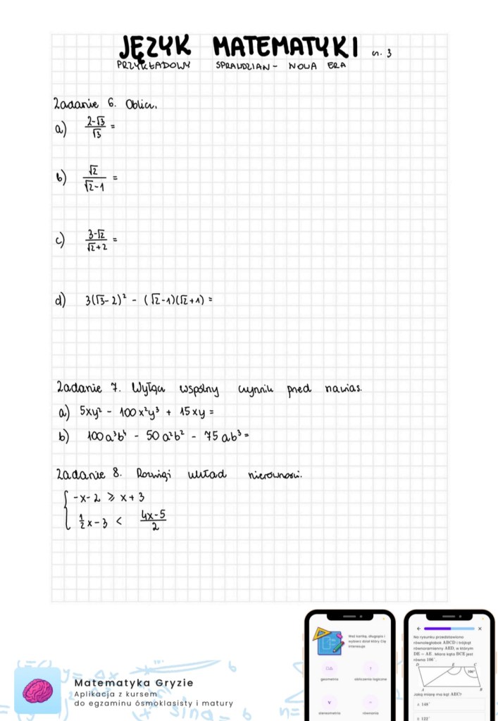 Język matematyki – sprawdzian klasa 1 – Nowa Era „Nowa Matematyka”