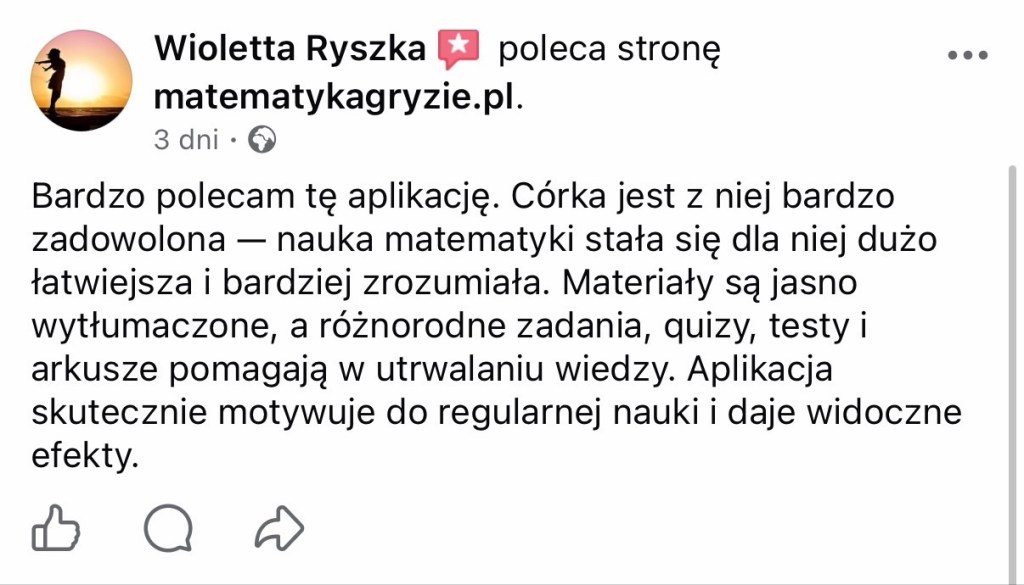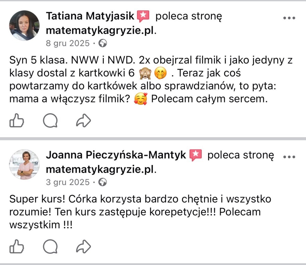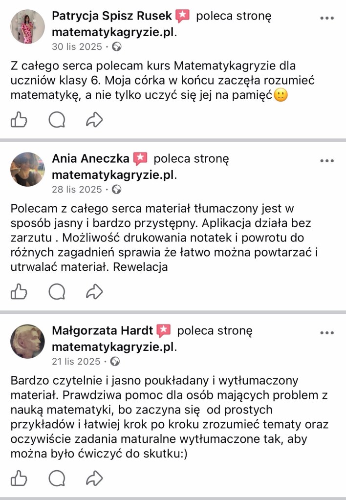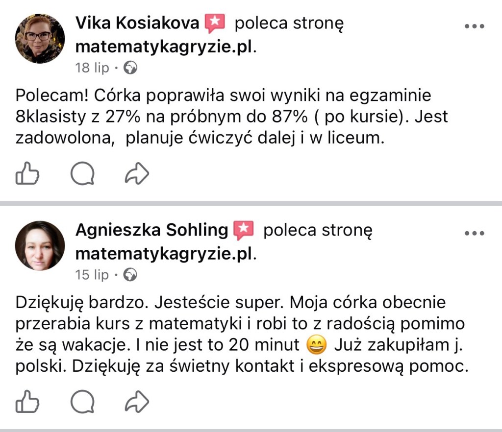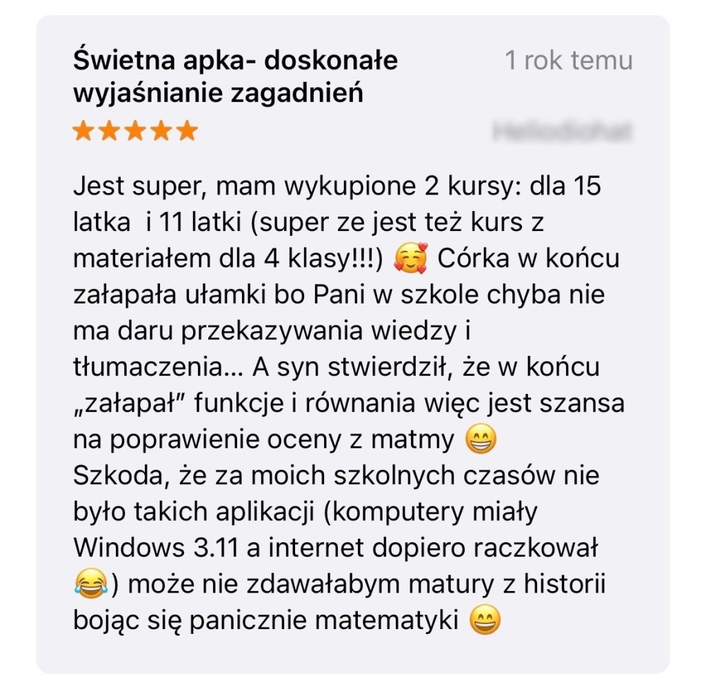 Tutaj zamieszczam niektóre z 1800 pozytywnych opinii o kursie, z którego zadaje zadanie domowe na korepetycjach indywidualnych: